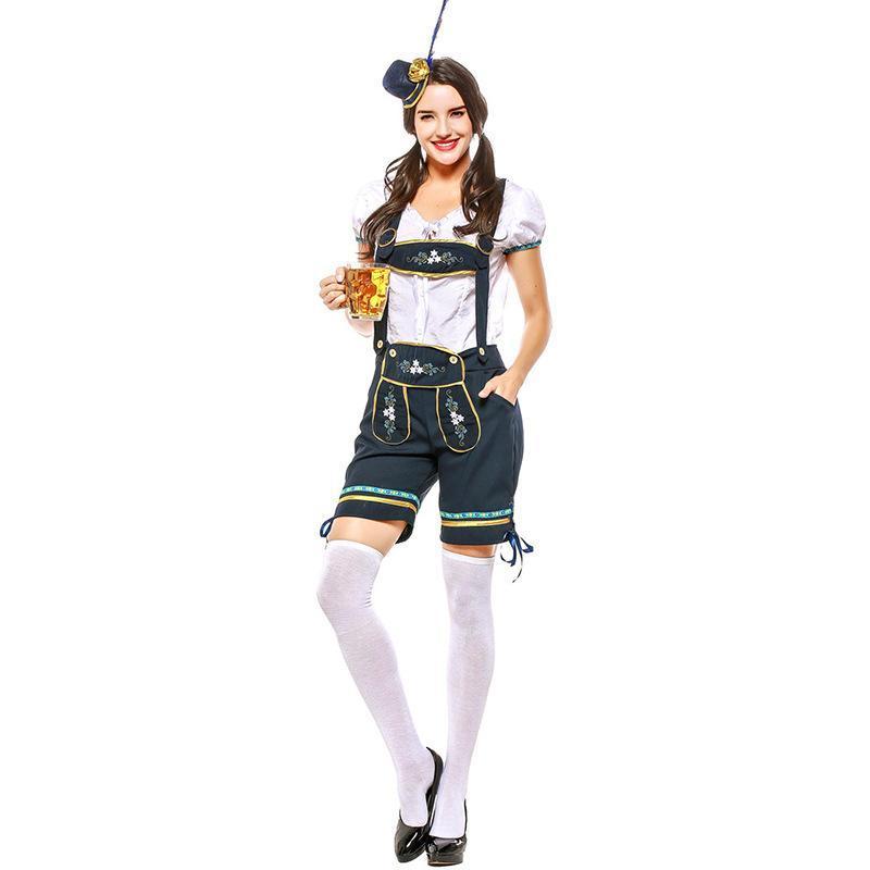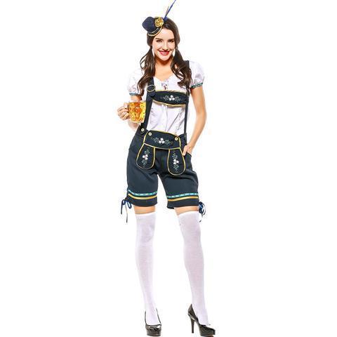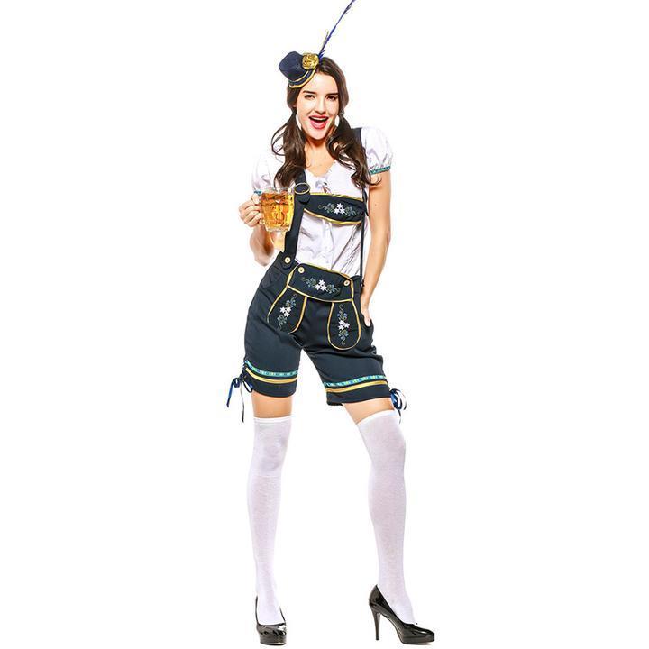 Dark Blue German Oktoberfest Lederhosen Beer Girl Costume